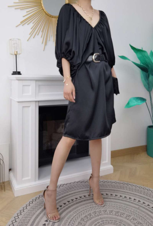 *Fabriqué en Italie Robe croisée dans le dos avec drapé en satin