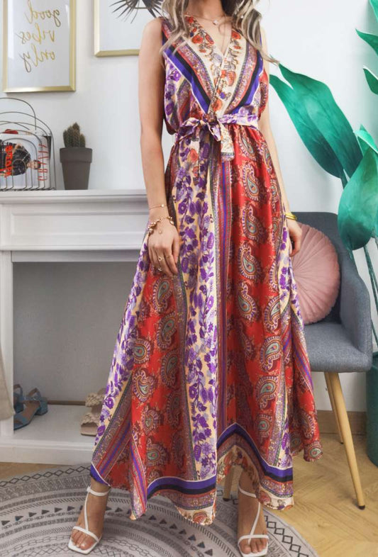 *Fabriqué en Italie Robe longue à ligne évasée avec motif floral paisley