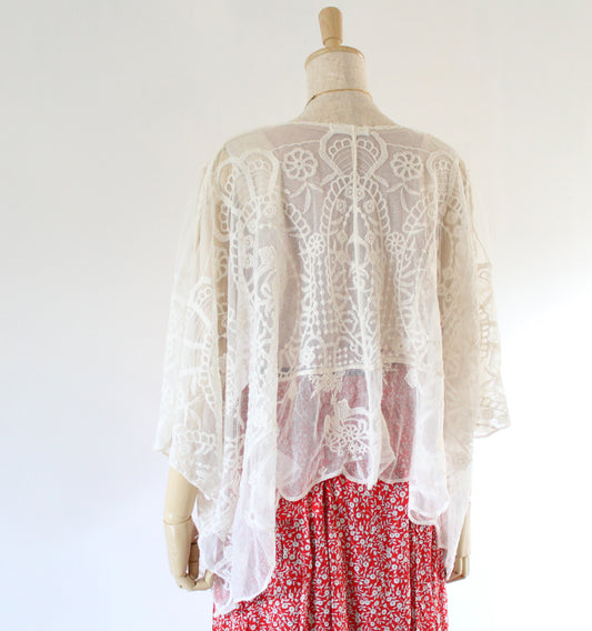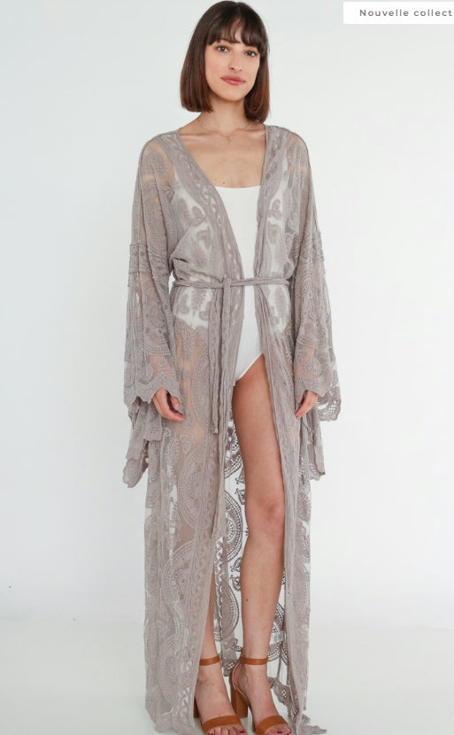 ***Cardigan Kimono maxi long en dentelle à manches volumineuse