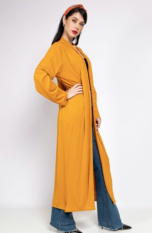 *PARIS*Cardigan long en tricot transparent avec poches fendues et plissées