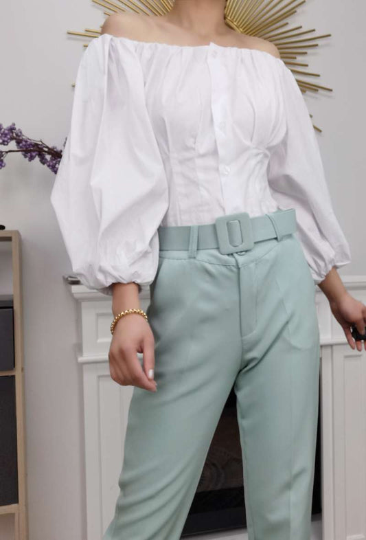 *Fabriqué en Italie* Chemisier replié à manches ballon et épaules dénudées